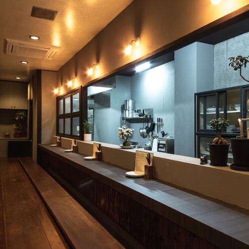 足元ゆったりの掘りごたつ式のカウンター席では、目の前で繰り広げられるシェフの調理風景を楽しみながら、リラックスしたひとときをお過ごしいただけます。温もりのある空間で、料理の香りに包まれながら、特別な体験を味わうことができる魅力的な空間♪カジュアルな雰囲気のため、お一人様でのご来店も大歓迎です!